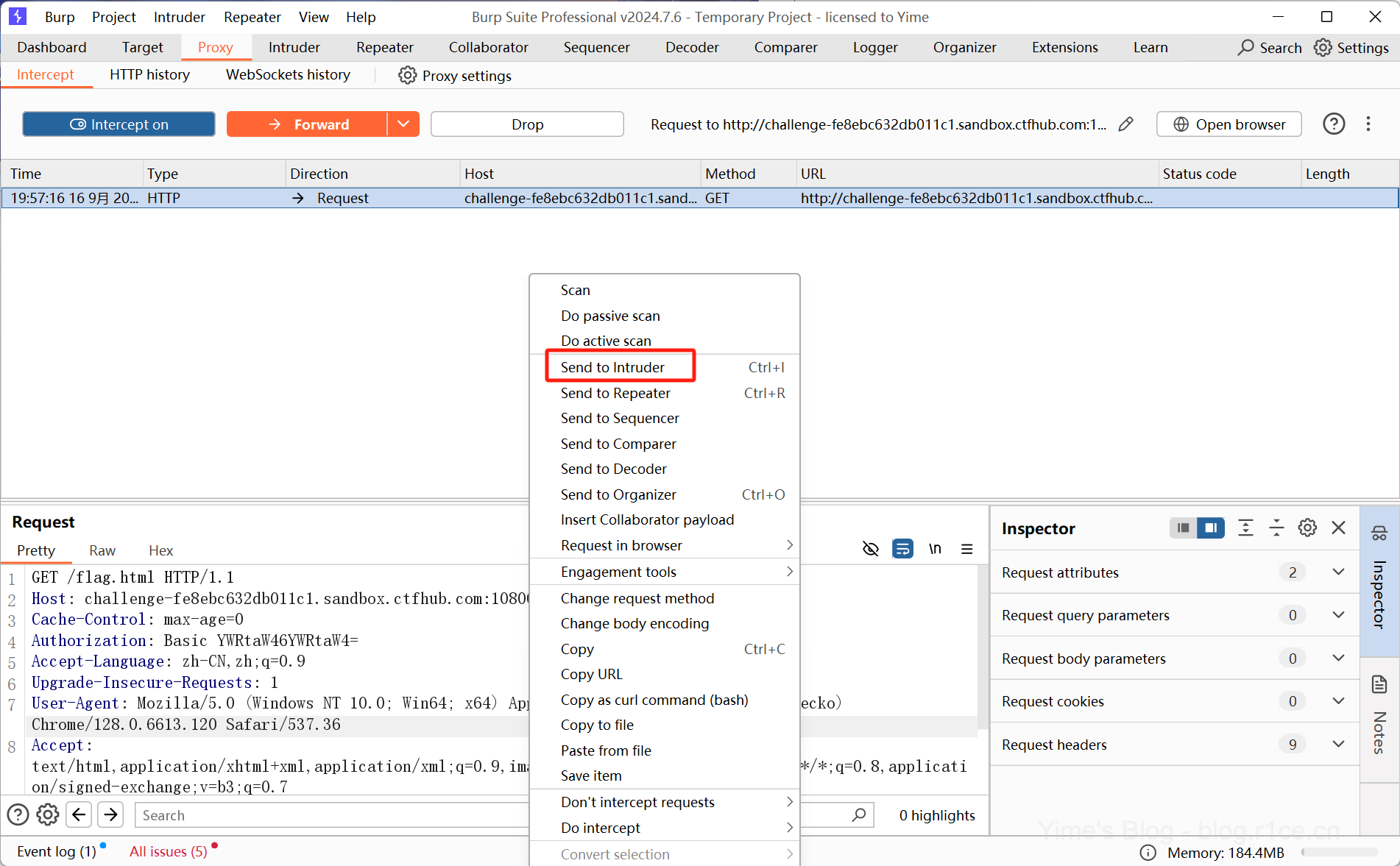 使用Burp进行抓包,将GET方法修改为CTFHUB方法。
