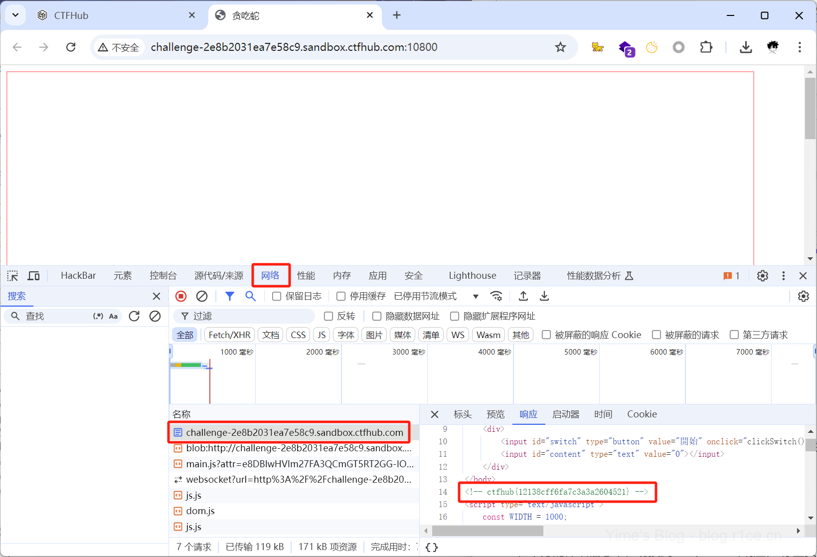 按F12打开开发者工具,进入网络页面。找到主页的请求文件,选中后点击响应页面,即可获得Flag。