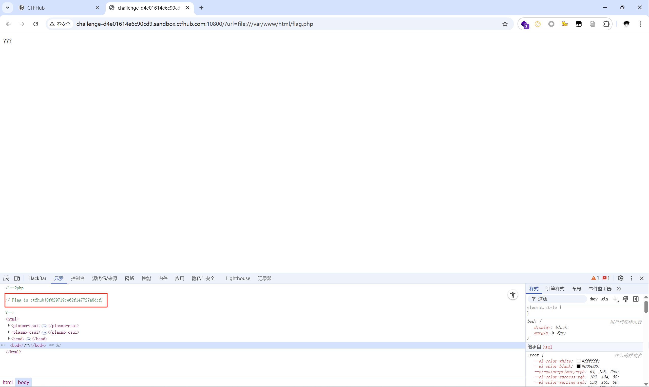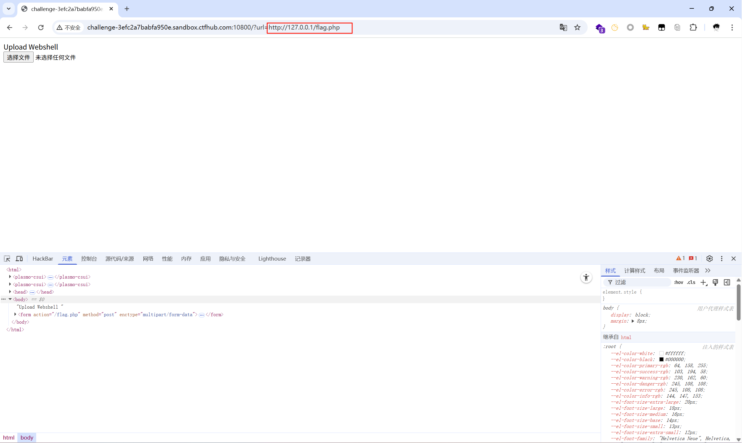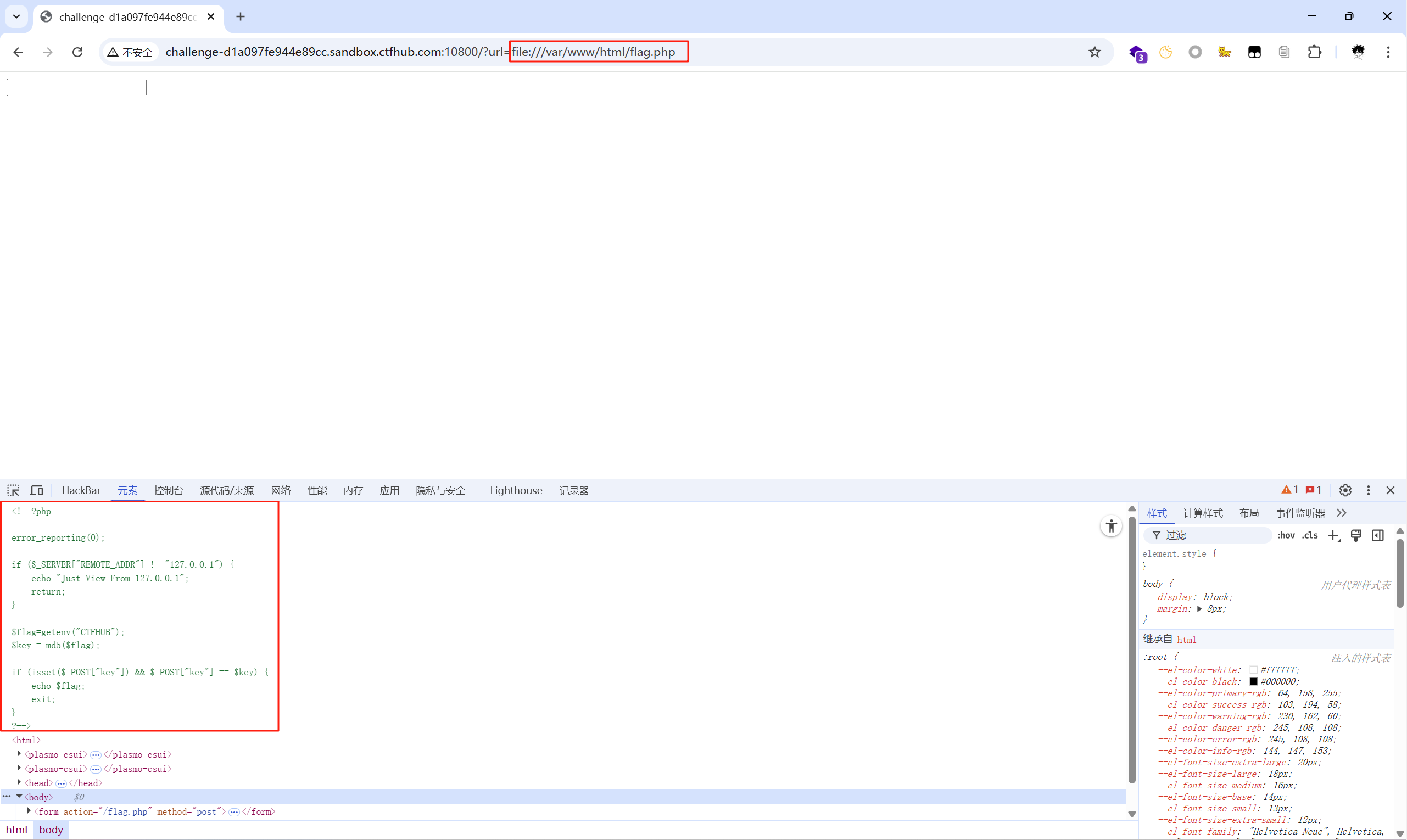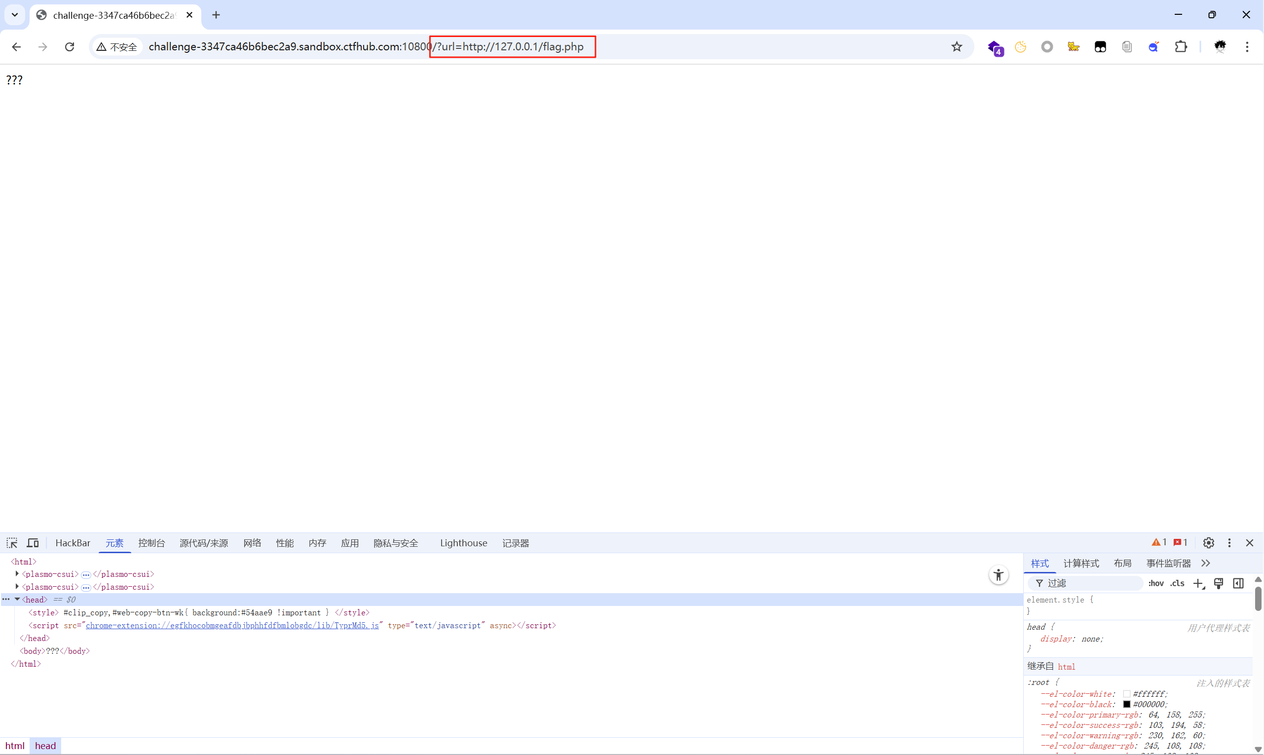 我们通过访问 http://127.0.0.1/flag.php,发现成功跳转到页面
