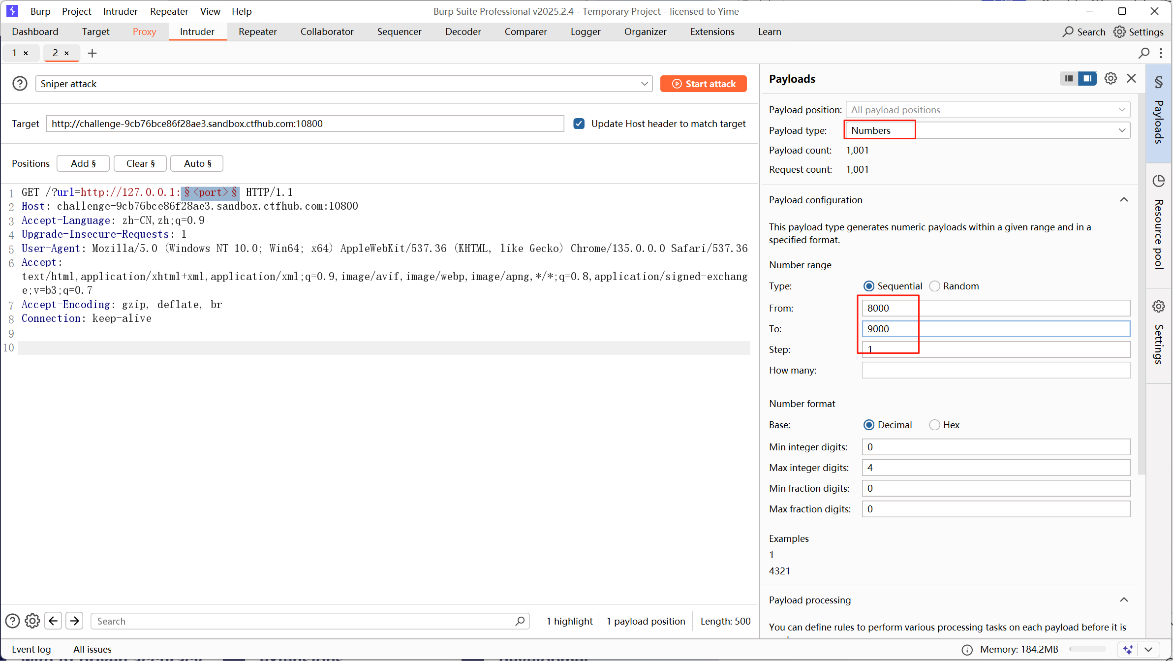 来来来性感 CTFHub 在线扫端口,据说端口范围是 8000-9000 哦,