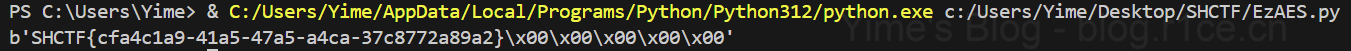 解题思路: 1 2 3 4 5 6 7 8 9 10 from Crypto.Cipher import AESciphertext = b'\x9d\xe5\xe2\xdd\xdc\x02\xddS7\xc6\xd8\x90\xc5_V\xf0!R\xb9A\x93/\xf9\x9c:{K\x8f\xdfS\xf0\x02\xf0*\x7f\xe2\x84\x91\x9fRA>.\xd2h\x95\xa0\x90' iv = b'\x8c\x9at\x95Q\x04\x8d\x91TtE\xbd\xe3\xdf\x1fD' key = b'\x04\x8eg\x9c\xb6\x14v\xe0\xcd\x9a\x92\xd5\xfag\xe5\xa3' my_aes = AES.new(key, AES.MODE_CBC, iv) decrypted_flag = my_aes.decrypt(ciphertext) print (decrypted_flag)
