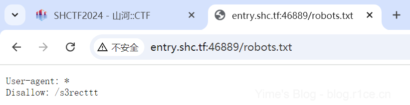 根据“robots.txt”页面提示,访问“/s3recttt”页面。