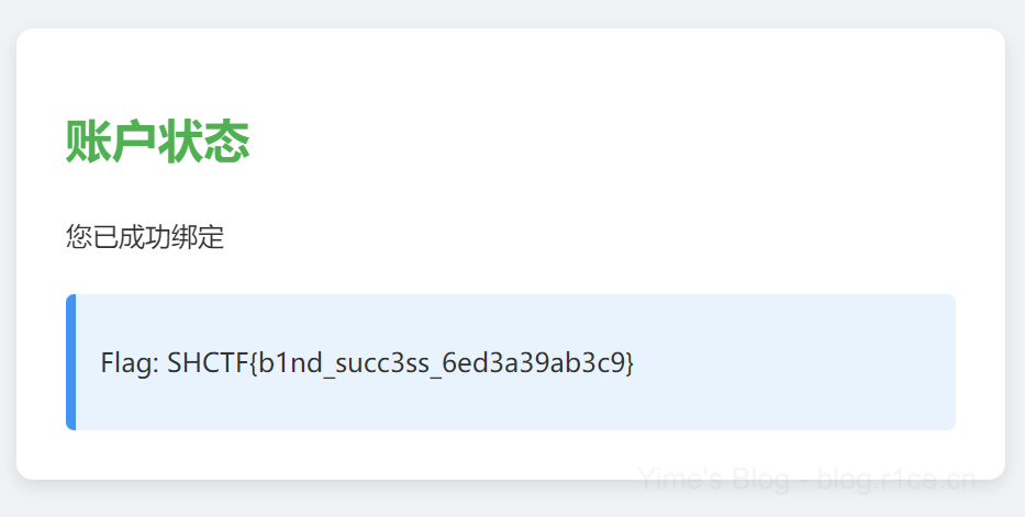 Flag: 1 SHCTF{b1nd_succ3ss_6ed3a39ab3c9}