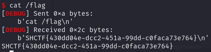 Flag: 1 SHCTF{7Ush87-akjxcy2Ju-dwia9;JSO-IQixnsm}
