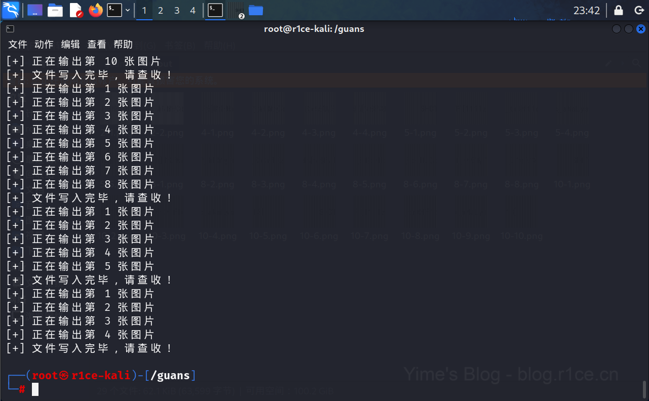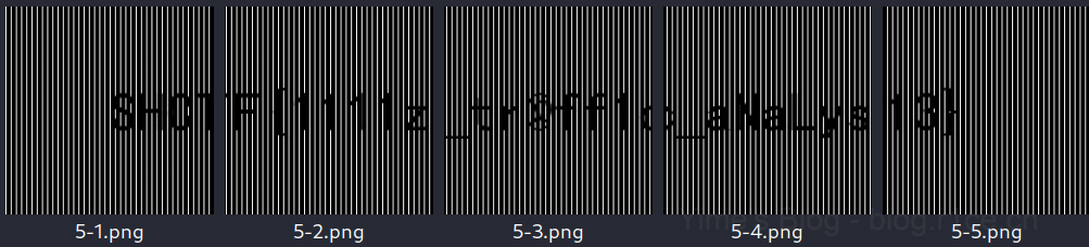 1 2 3 4 5 6 7 8 9 10 11 12 13 14 15 16 17 18 19 def ImageWrite (x,y,imagename ): x,y = int (x),int (y) img = np.array(Image.open (imagename).convert("RGB" )) if x != 0 : for i in range (x): print ('[+] 正在输出第 {} 张图片' .format (i+1 )) z = np.zeros_like(img) z[:, i::x] = img[:, i::x] imgnew = Image.fromarray(z.astype(np.uint8)) imgnew.save('./output/{}-{}.png' .format (x,i+1 )) print ('[+] 文件写入完毕,请查收!' ) else : for i in range (y): print ('[+] 正在输出第 {} 张图片' .format (i+1 )) z = np.zeros_like(img) z[i::y, :] = img[i::y, :] imgnew = Image.fromarray(z.astype(np.uint8)) imgnew.save('./output/{}-{}.png' .format (y,i+1 )) print ('[+] 文件写入完毕,请查收!' )