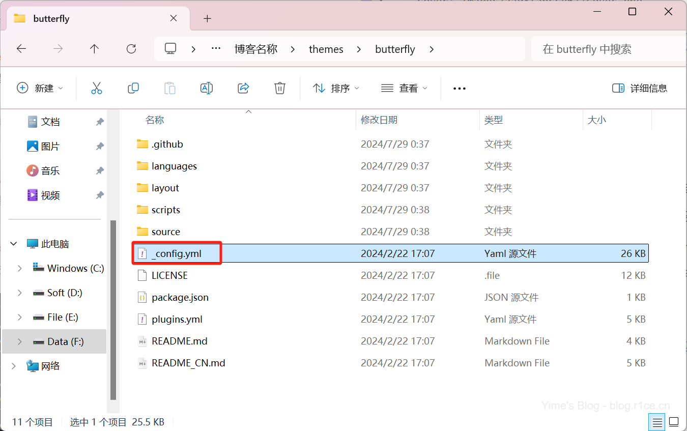 1.打开[博客目录]\themes\butterfly文件夹,将其中的文件_config.yml进行复制。