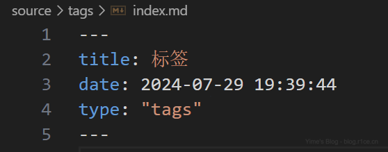 打开[博客目录]\source\tags\index.md文件,进行编辑。