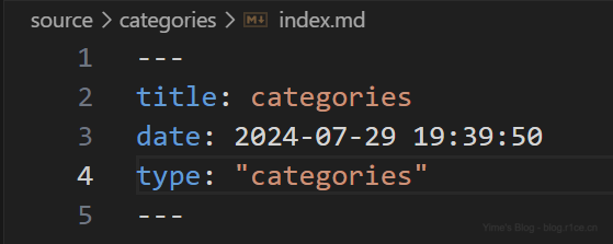 打开[博客目录]\source\categories\index.md文件,进行编辑。