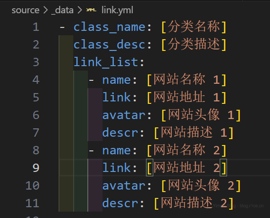 创建文件夹,目录为[博客目录]source/_data,之后在这个文件夹创建一个名为link.yml的文件,打开并编辑。