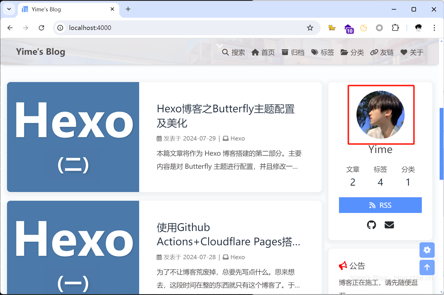 在浏览器访问http://localhost:4000/,查看更改是否生效,没问题后便可向Github仓库提交更改,Actions将会自己发布修改后的博客到Cloudflare Pages。