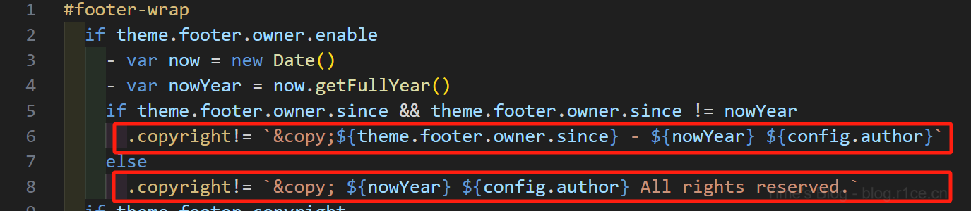 打开文件[博客目录]\themes\butterfly\layout\includes\footer.pug,进行以下修改