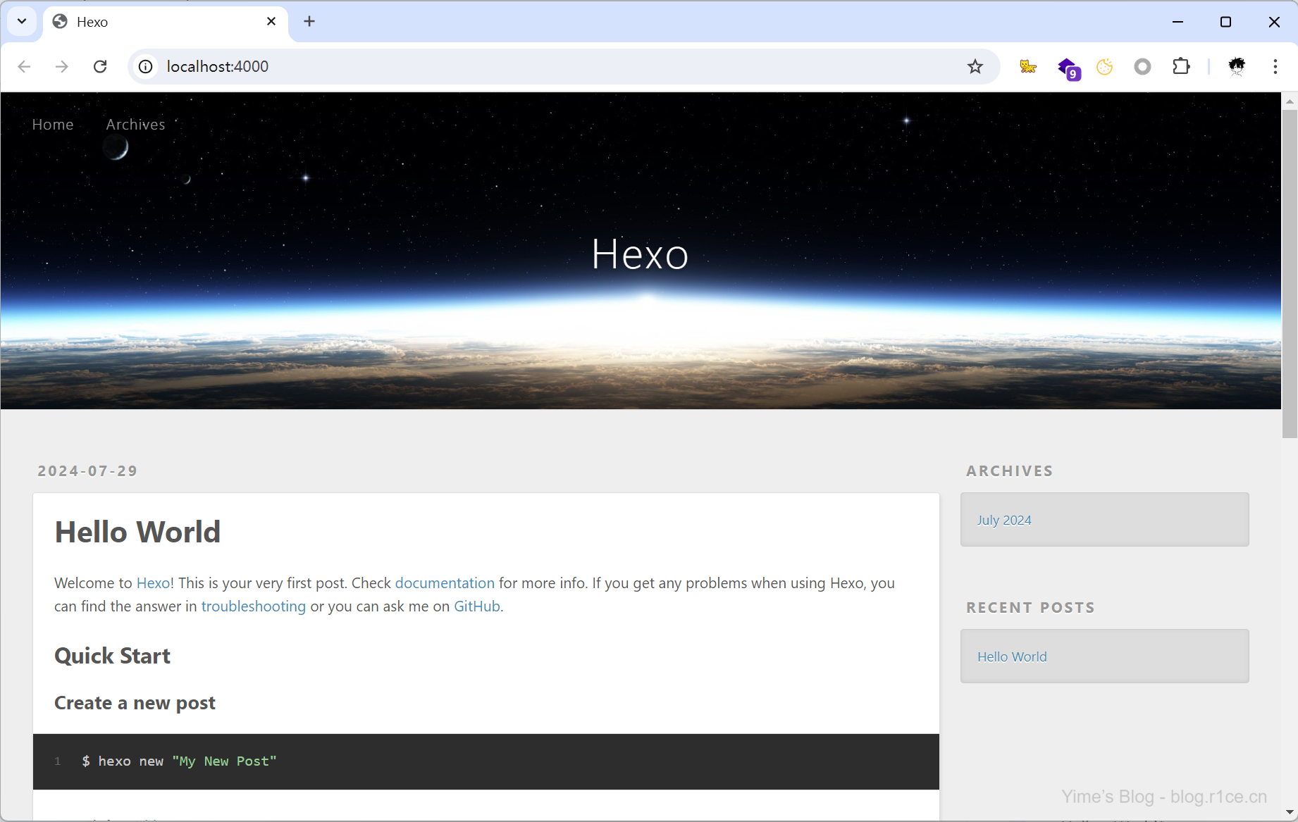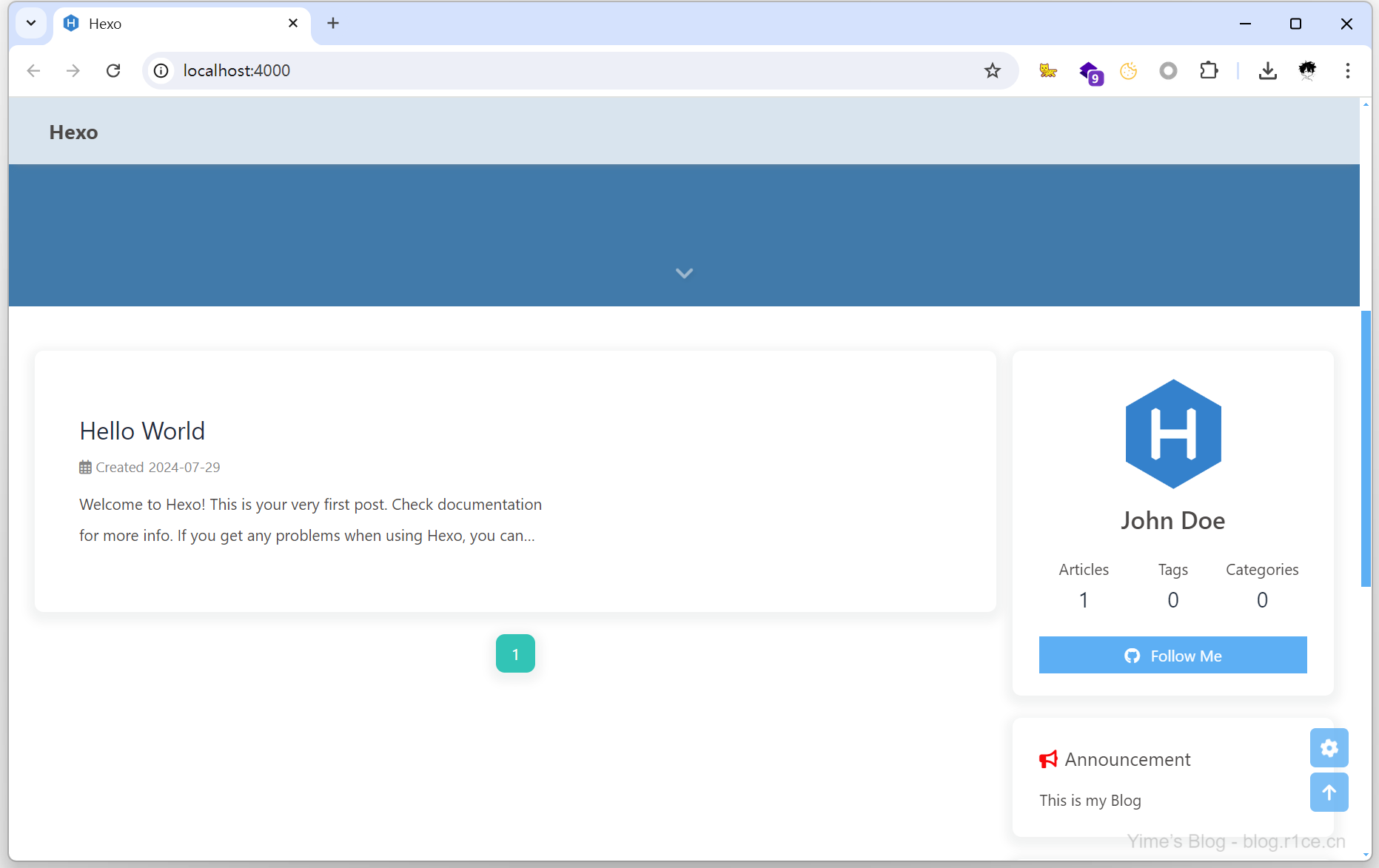 然后访问http://localhost:4000/,没有问题的话会发现博客已经变了一个样子了。