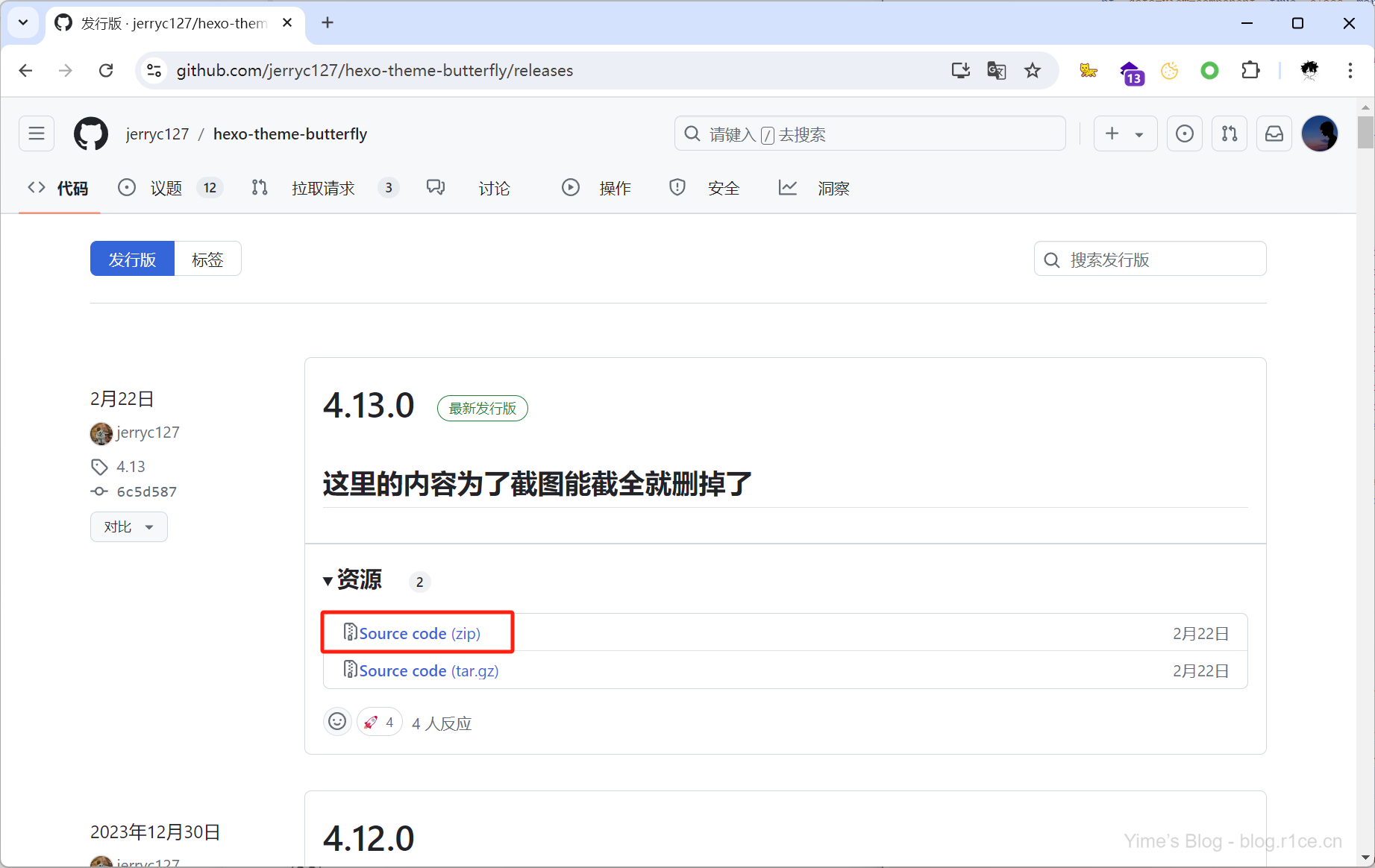 访问以下网址来到主题发行页面 https://github.com/jerryc127/hexo-theme-butterfly/releases