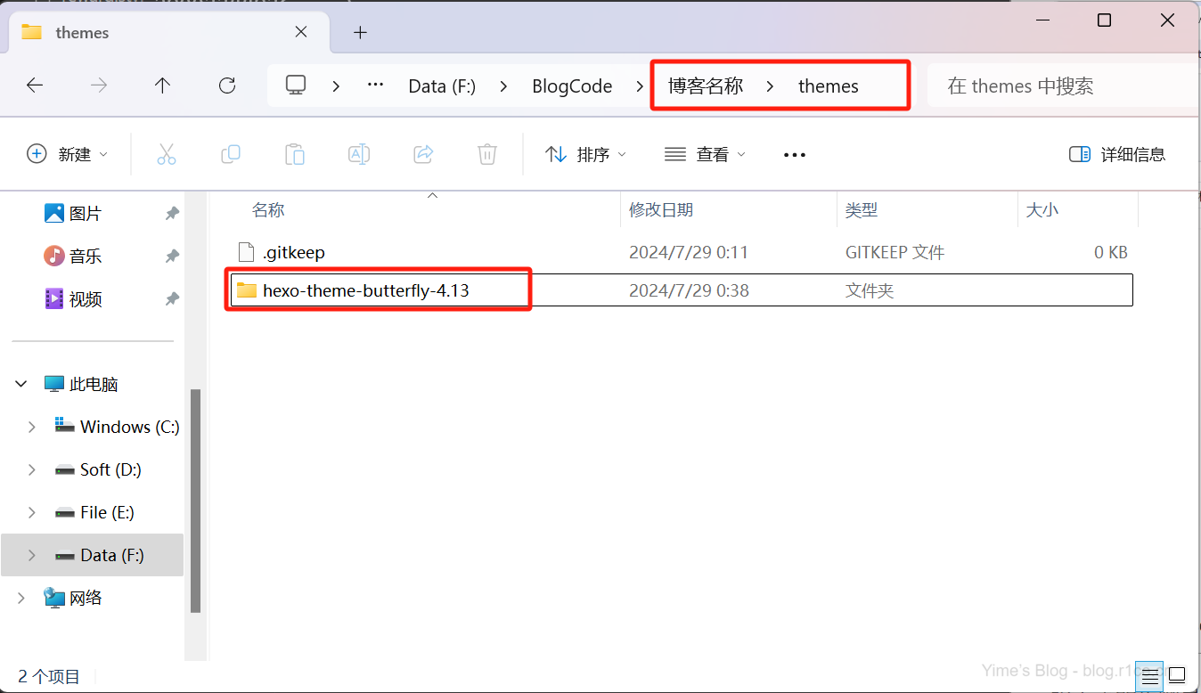接下来的步骤是将压缩包中的文件夹解压到[博客名称]\themes目录中,就像这样: