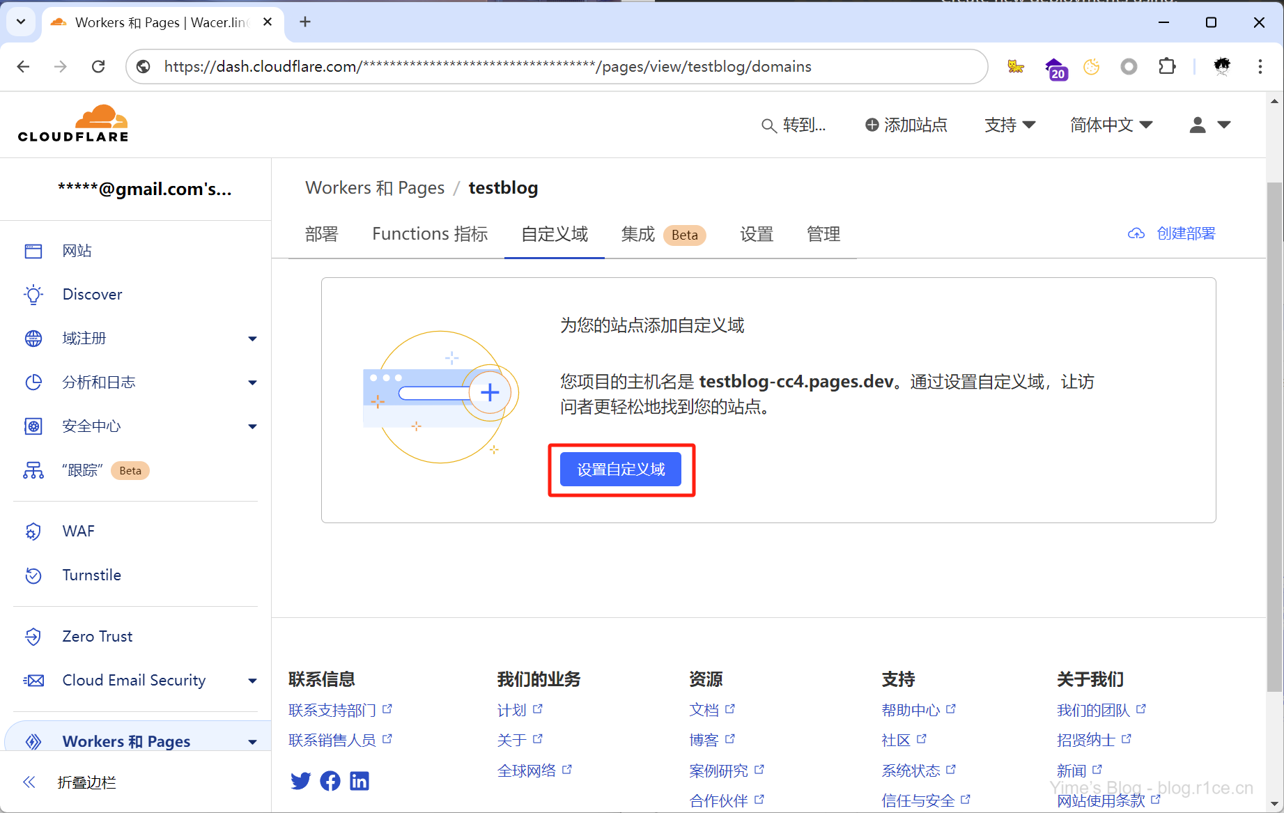接下来为站点绑定自己的域名,点击下方的添加自定义域,跳转到新的页面。