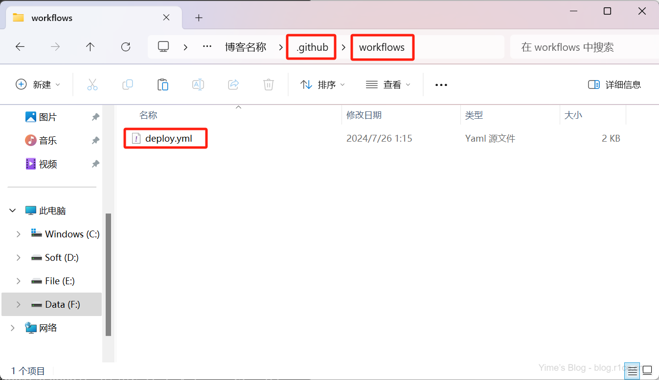 在.github文件夹下边创建一个新文件夹,名为workflows,并在workflows文件夹中创建deploy.yml文件。