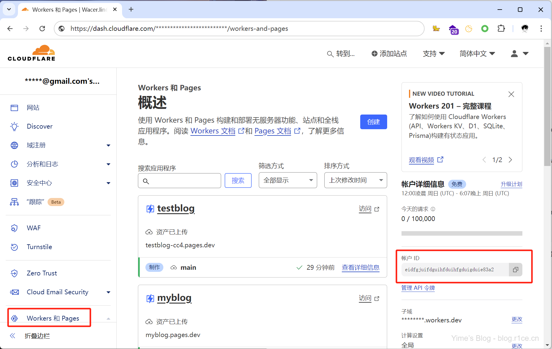 1.获取CLOUDFLARE_ACCOUNT_ID,即Cloudflare的账户ID