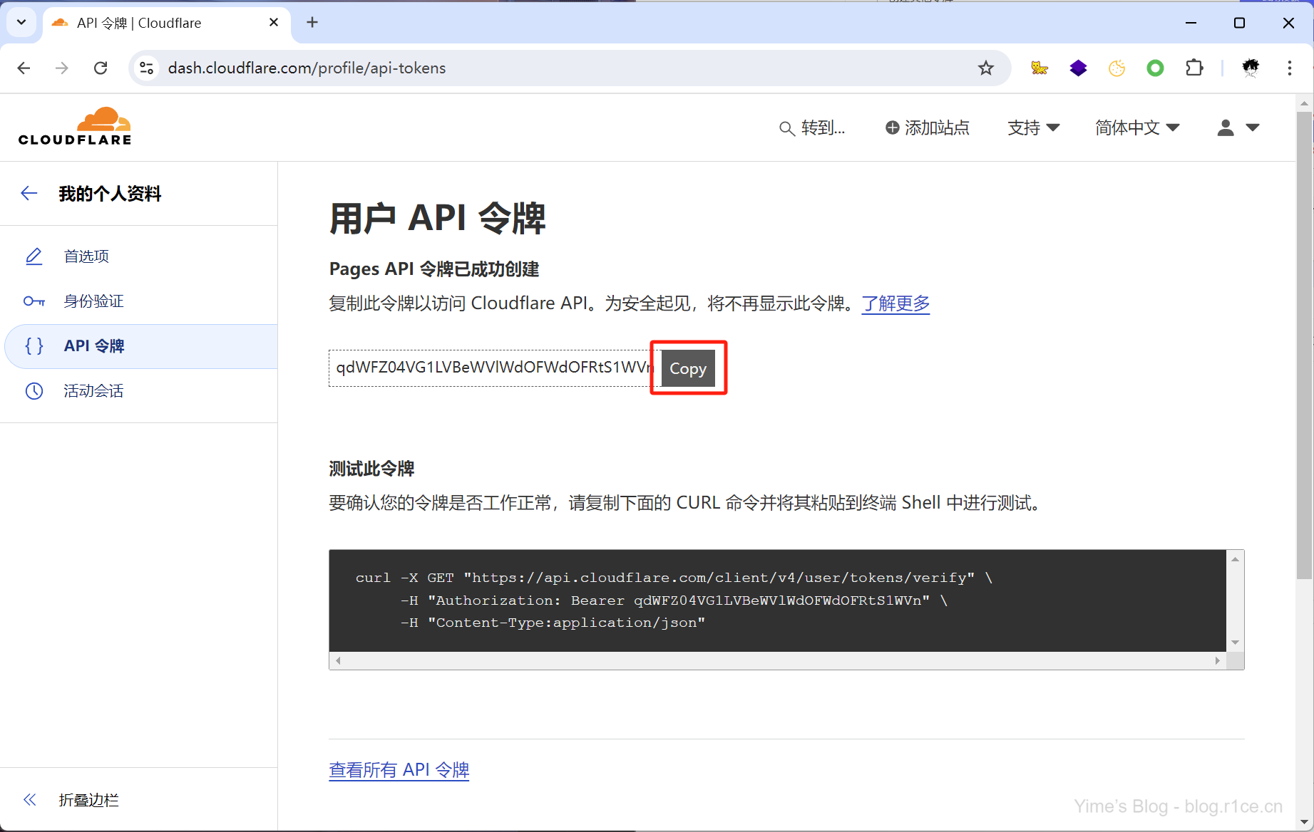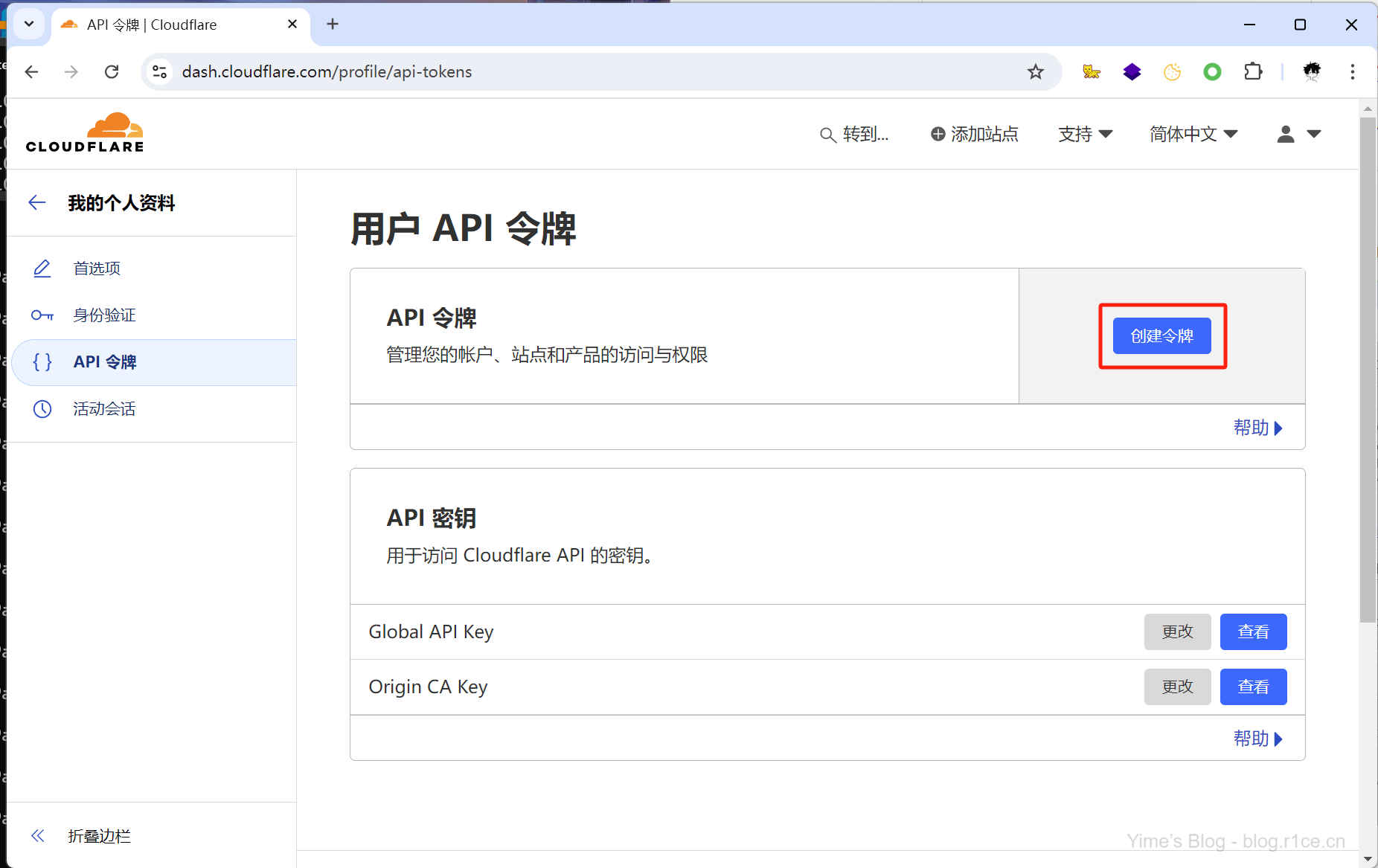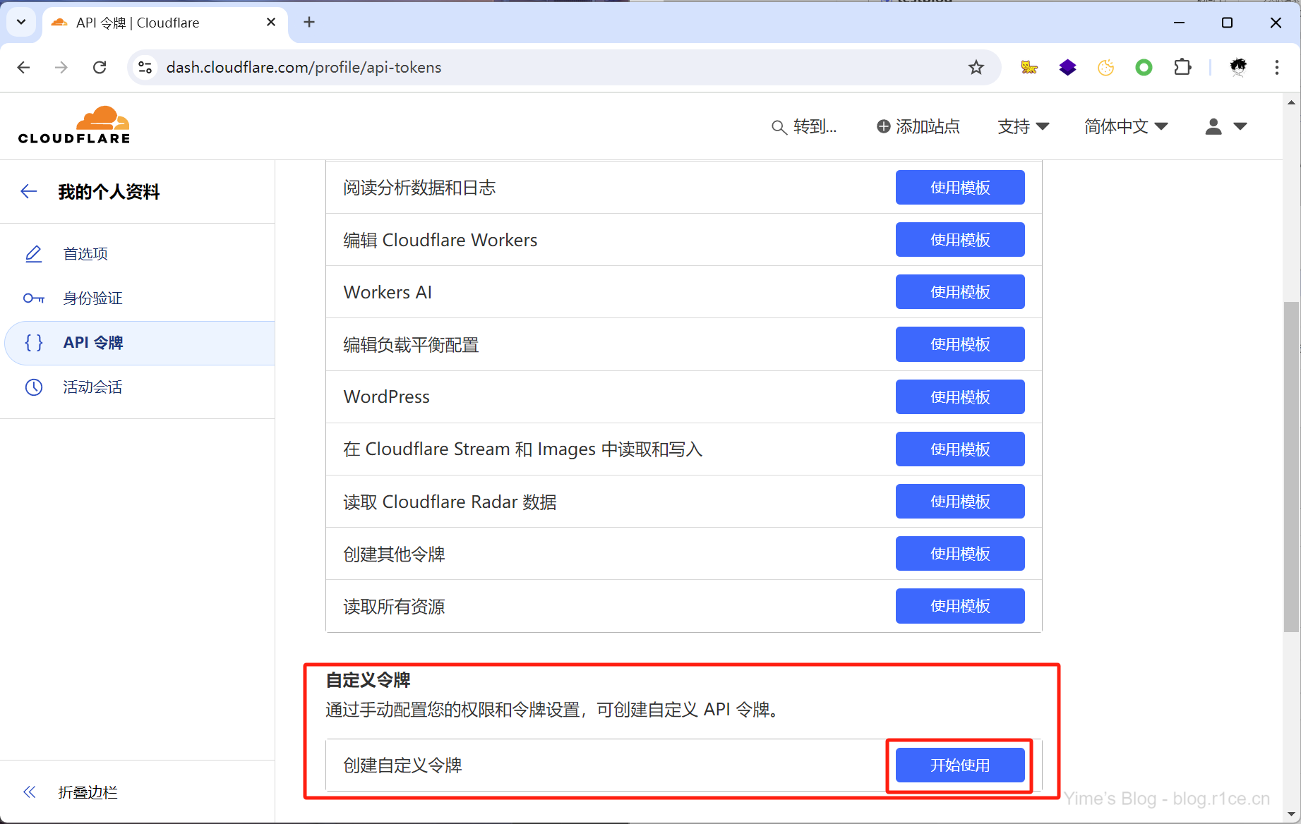 2.获取CLOUDFLARE_API_TOKEN,即Cloudflare的API Token