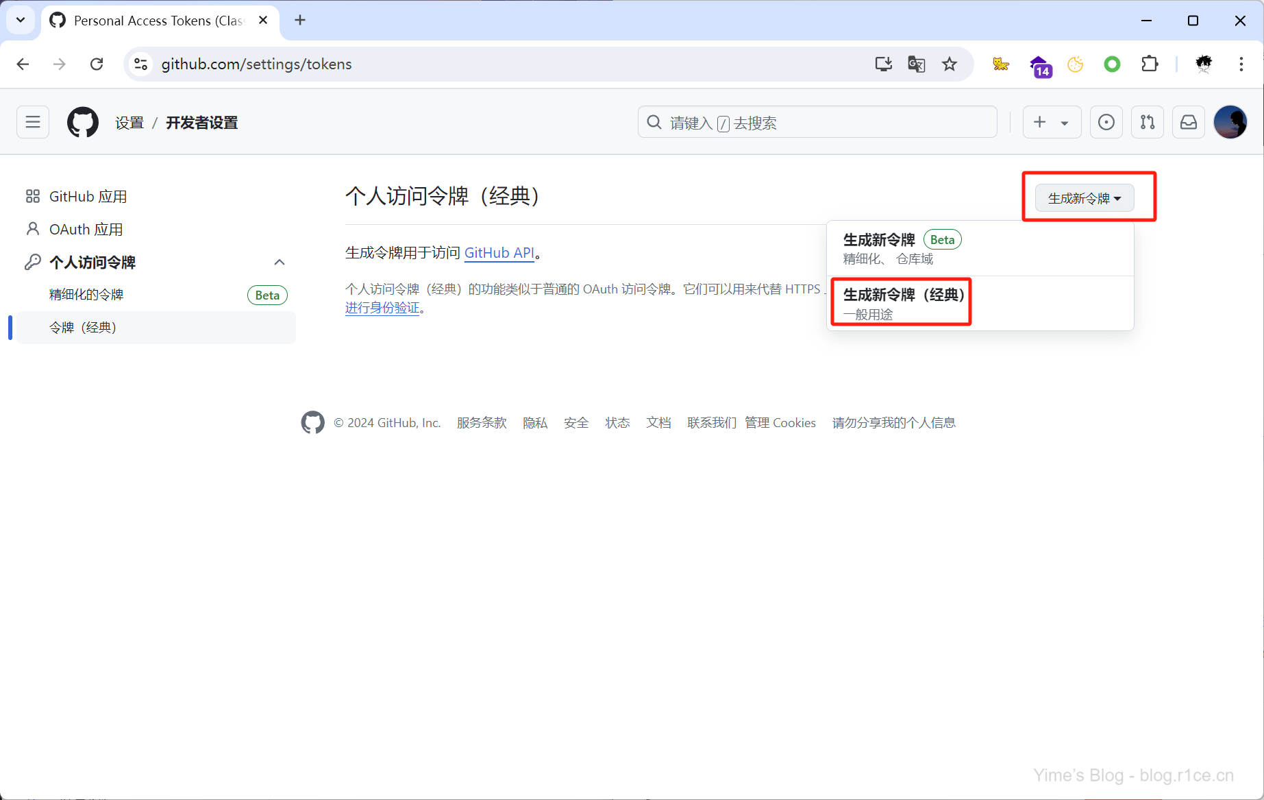访问以下地址来到Github个人访问令牌页面,https://github.com/settings/tokens